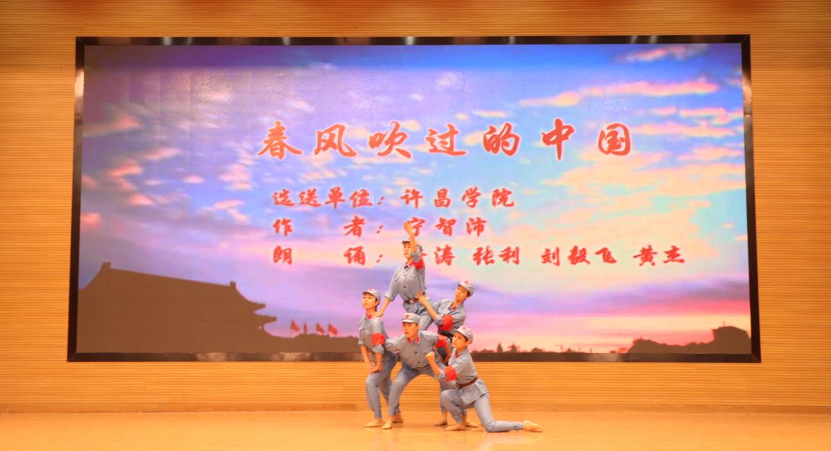 在决赛现场,经过初赛选拔的40所高校都派出了精英代表队参加比赛,所选送朗诵节目讴歌了新中国成立70年来我国在经济建设和社会发展方面取得的伟大成就,思想性强,形式多样,富有感染力,充分展现了我省高校广大统战成员和统战干部良好的精神风貌,展望了全省高校统战工作美好的发展前景。我校代表队选送的原创作品《春风吹过的中国》,由宁智沛老师执笔创作,许涛、张利、刘毅飞、黄杰4位老师精彩演绎,音乐舞蹈学院5名学生现场伴舞,配以大气恢弘的背景视频,整个节目舞台表现力和感染力强,赢得了现场观众阵阵掌声。