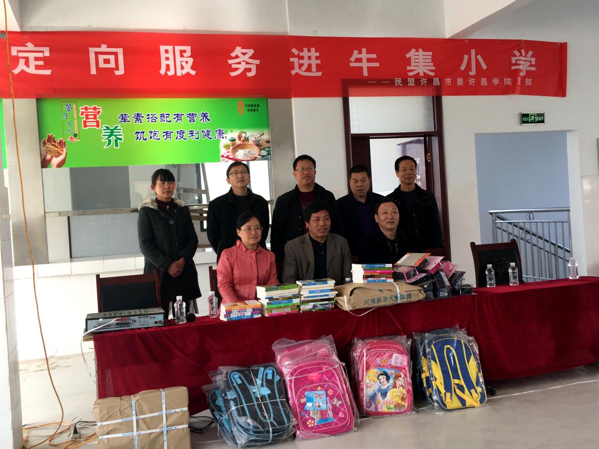 为发挥民盟自身优势,积极服务地方,助力脱贫攻坚,在前期调研的基础上,11月23日下午,民盟许昌学院支部赴鄢陵县马栏镇牛集小学开展定向服务活动。