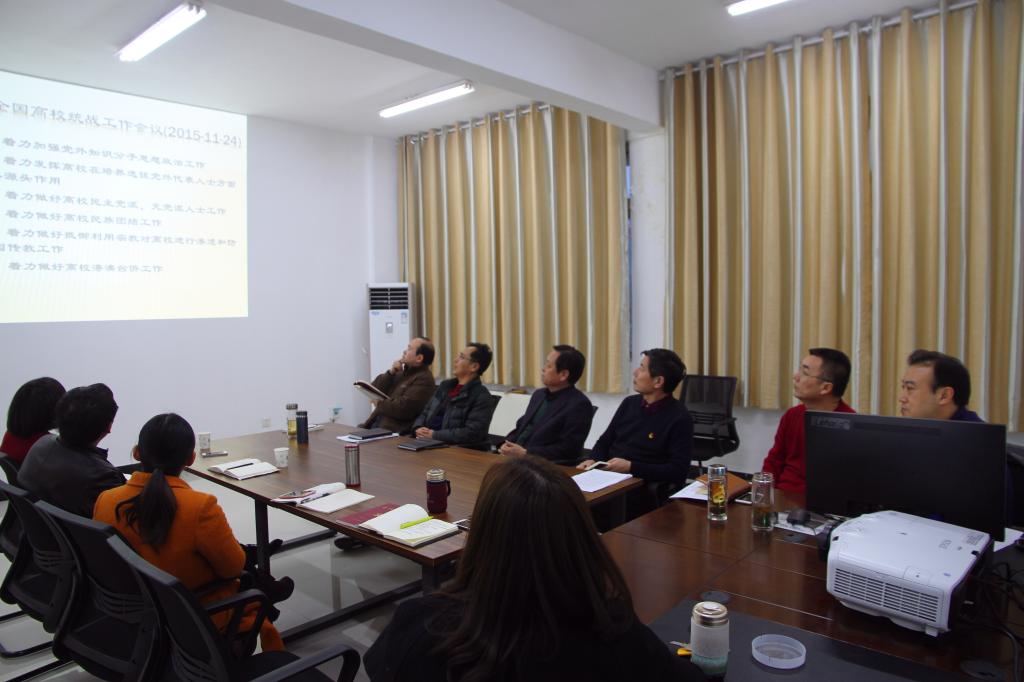 12月9日下午,党委组织部、统战部、党校党支部在办公楼521办公室召开支部政治理论学习会议。校党委副书记马超应邀参加会议,党委组织部部长谭水木主持会议。
