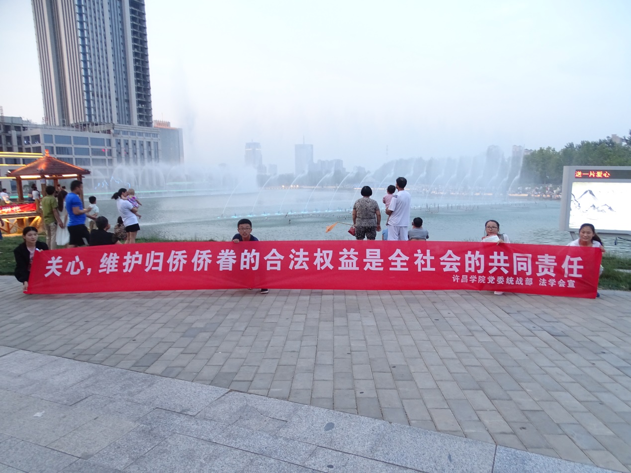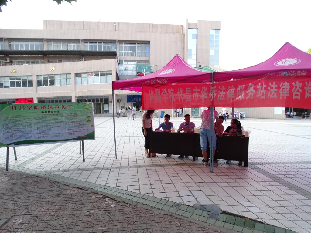 本次为侨法律服务月系列活动分为侨法知识宣传和法律咨询服务两个部分。我校法学会宣传员先后到许昌学院、许都公园、许昌市东湖、各大社区设立侨法咨询服务点,摆放宣传版面、拉起宣传横幅、播放侨法宣传音频,为来往行人发放侨法宣传页,讲解侨法知识,弘扬侨法精神,呼吁大家积极参与到法治宣传活动中,向更多的人传递法律知识和法治精神,携手共建法治社会。