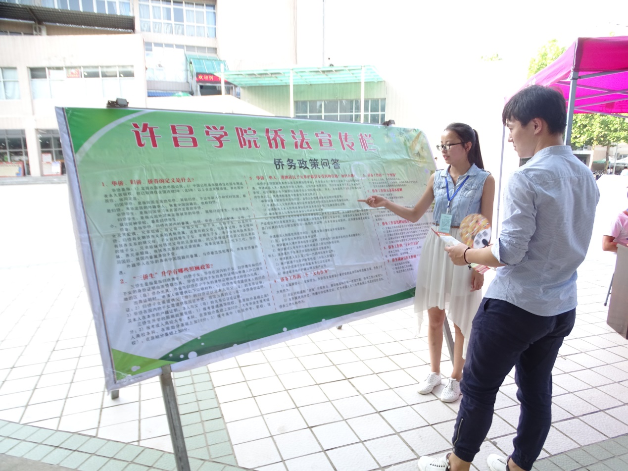 在活动过程中专业老师带领着侨法宣传员们以良好的精神风貌,通过多种宣传渠道和方式,结合许昌市民实际情况,针对侨务热点法律问题,进行耐心细致的讲解宣传。此次为侨法律服务月系列活动顺利开展,不仅增强了我校大学生和市民对侨法知识的了解,广泛传播了侨法精神,也有利于进一步凝聚侨心,汇集侨智,发挥侨力,维护侨益,为构建和谐社会营造良好的氛围。