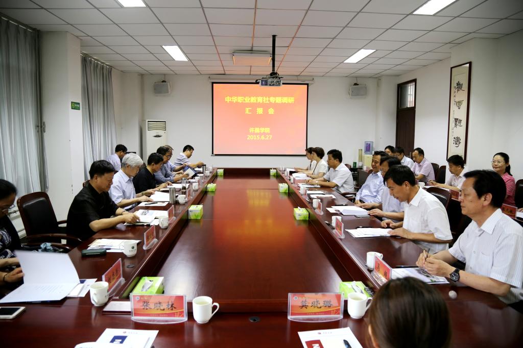 6月27日,第十一届全国人大常委、中华职业教育社原副理事长李重庵带领中华职业教育社副总干事杨农、中国职业教育学会副会长余祖光、全国政协教科文卫体委员原巡视员张文珊等莅临许昌学院,围绕“引导一批普通本科高校向应用技术大学类型高等学校转型”这一主题开展专题调研。许昌市委书记王树山,市委常委、统战部部长刘保新,市政协副主席张巍巍,我校领导陈建国、赵继红等陪同调研。