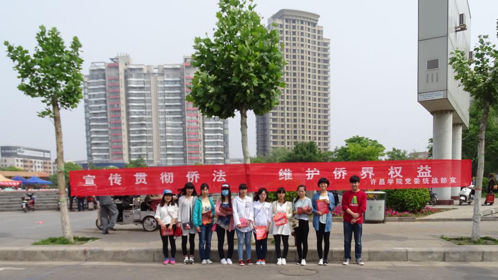 为全面落实 “六五”普法规划,加大宣传涉侨法律法规工作力度,切实维护海外侨胞和归侨侨眷的合法权益,5月4日至10日,我校开展了以“宣传贯彻侨法维护侨界权益”为主题的侨法宣传系列活动。本次活动由校党委统战部主办,法政学院承办。