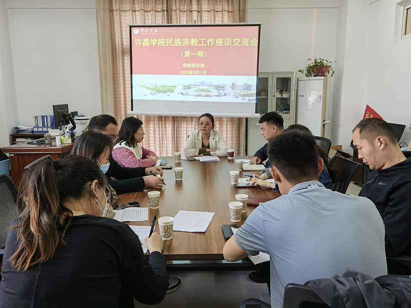 3月7日下午,我校民族宗教工作座谈交流会在办公楼419党委统战部办公室召开。二级学院团委负责人、辅导员、党委统战部工作人员参加座谈会。