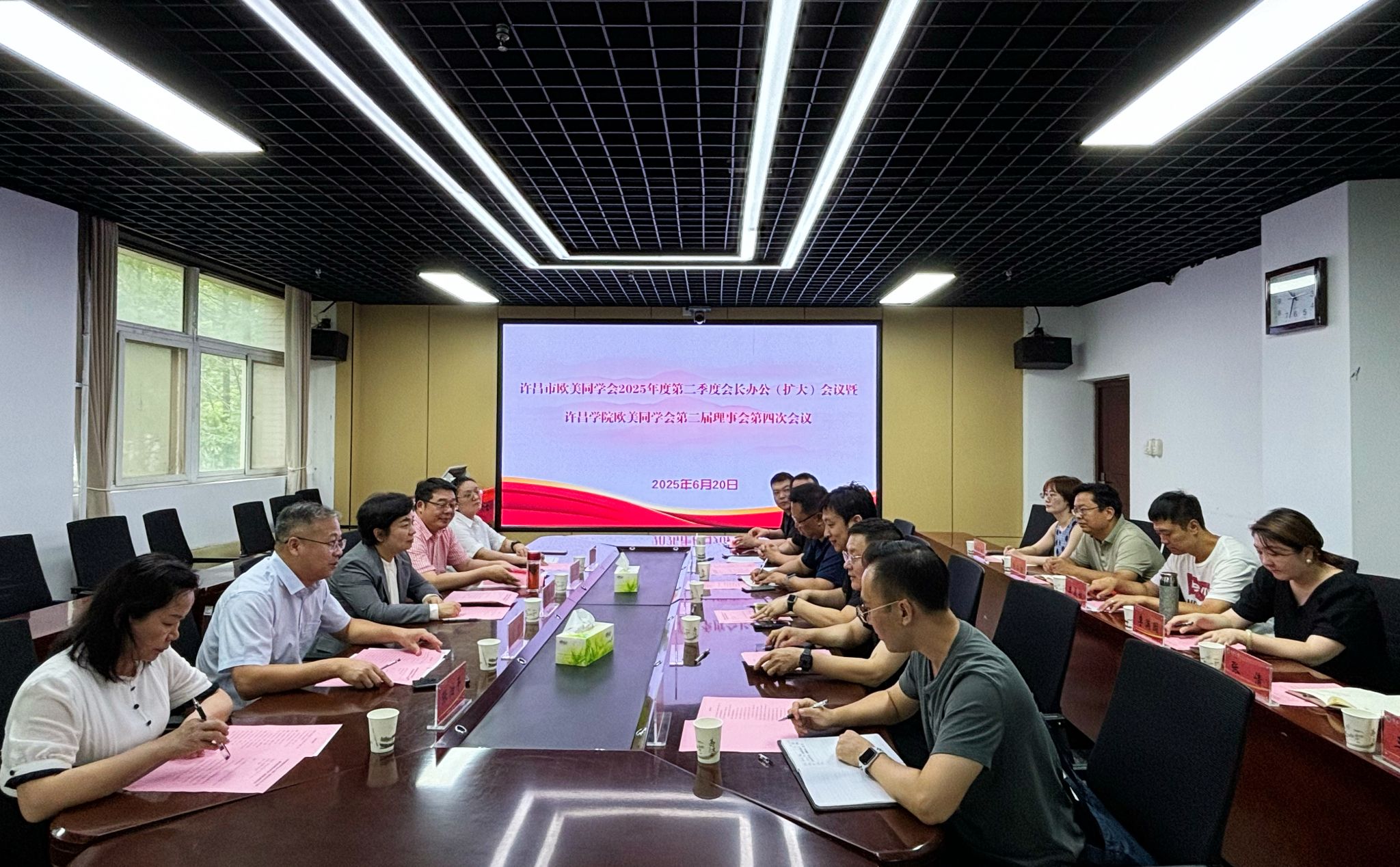 2025年6月20日,许昌市欧美同学会2025年度第二季度会长办公(扩大)会议暨许昌学院欧美同学会第二届理事会第四次会议在许昌学院召开。许昌学院党委统战部相关负责人、许昌市欧美同学会(留联会)和许昌学院欧美同学会(留联会)相关负责人、骨干成员参加会议。会议由许昌学院欧美同学会会长闫慧主持。
