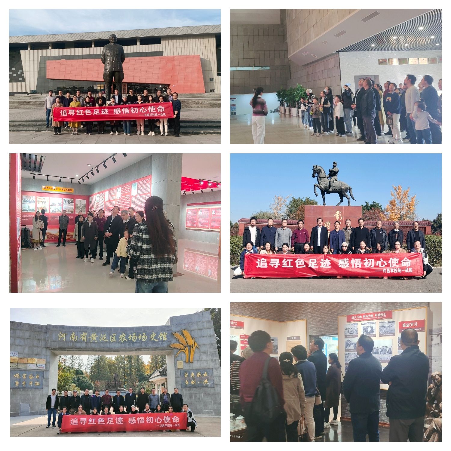 为深入学习贯彻习近平总书记关于做好新时代党的统一战线工作的重要思想,进一步加强新时代党外知识分子思想政治引领,11月1日,党委统战部组织学校各民主党派、统战团体有关负责人,无党派代表人士,各级人大、政协常委,人大代表、政协委员以及统战干部等20余人先后赴吉鸿昌将军纪念馆、杜岗会师纪念馆及河南省黄泛区农场开展“追寻红色足迹,感悟初心使命”主题学习考察活动。