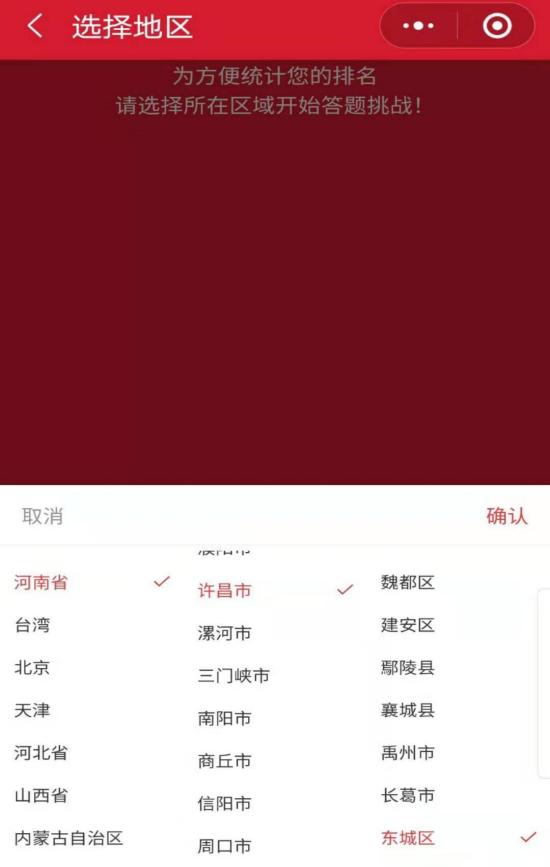 线上答题,通过微信扫描二维码下载小程序答题,注册授权时选定许昌市,答题有效。每日答题次数不限,总答题次数不限。