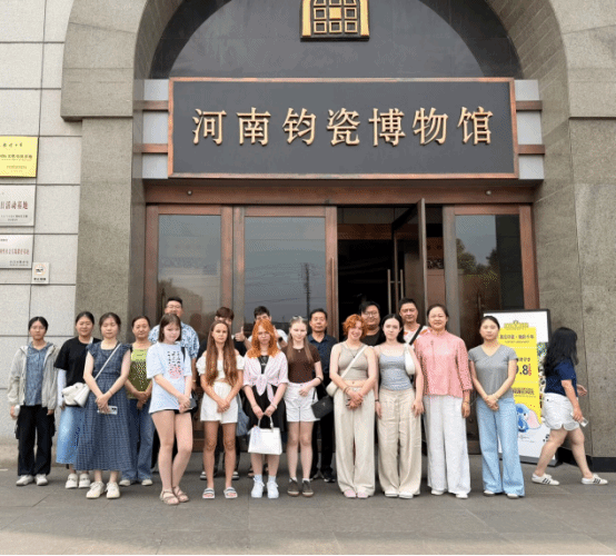 为深化中外文化交流,增强国际留学生对中国钧瓷非物质文化遗产的认知与理解,7月11日,我院“河南省钧瓷文化国情教育基地”项目组带领10名俄罗斯留学生前往禹州钧官窑址博物馆(河南钧瓷博物馆)开展了一场别开生面的国情文化教育与研学活动。通过实物观摩、非遗技艺体验、文化讲解等多元形式,留学生们深入探寻了钧瓷“入窑一色,出窑万彩”的艺术魅力,亲身感受中华传统工艺的博大精深。