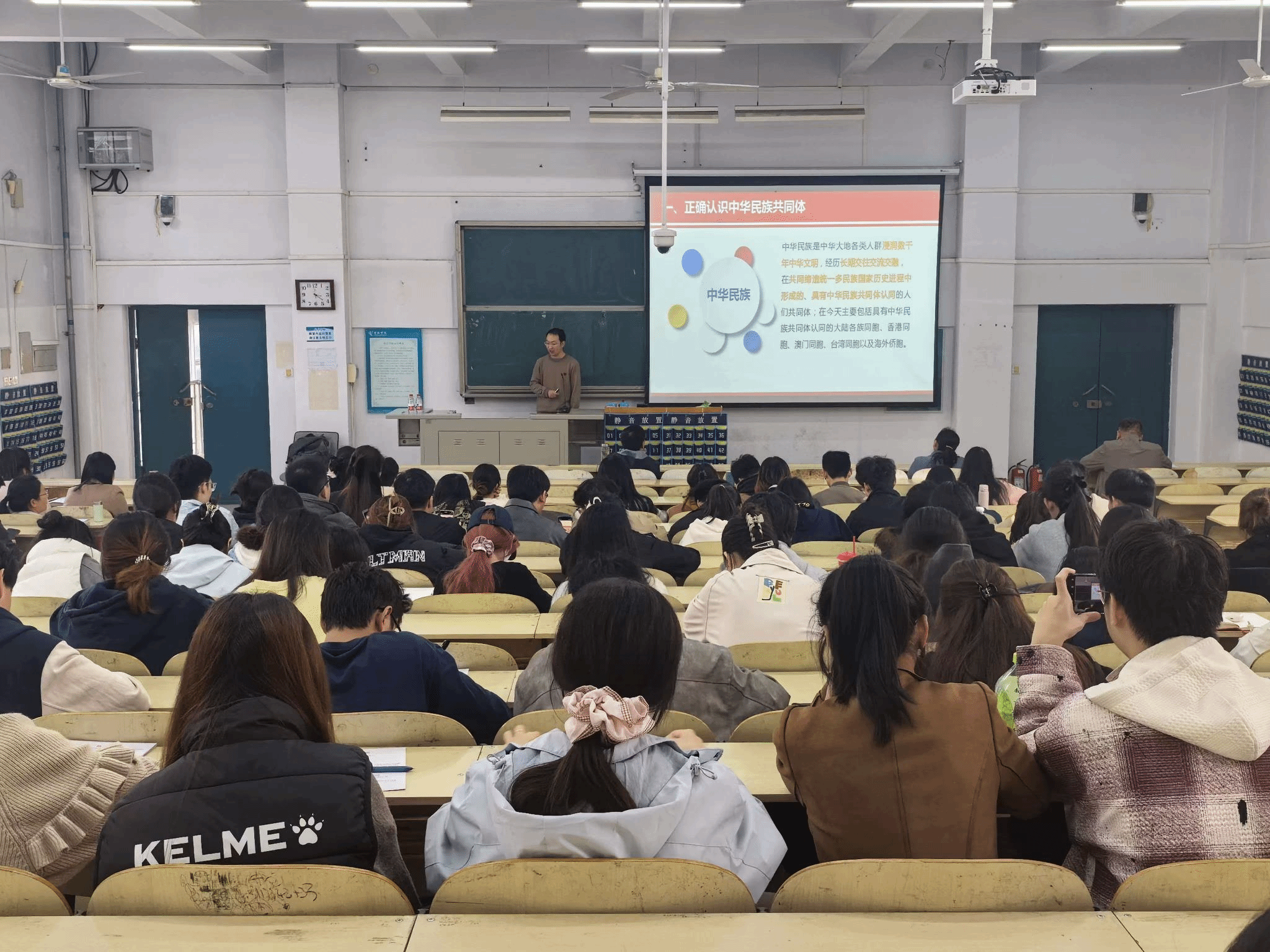 师彬彬博士以“多元一体”为主线,系统阐释了中华民族共同体意识的理论框架与实践路径。宣讲聚焦“两个核心概念”,深入解读国家意识、公民意识与法治意识“三个意识”的时代内涵,并通过“四个关系”的辩证分析——共同性与差异性、中华民族共同体意识与各民族意识、中华文化与各民族文化、物质与精神的关系,引导师生正确认识民族工作规律。结合秦汉大一统奠基、隋唐民族交融、近代共御外侮等历史脉络,师博士以“休戚与共、荣辱与共、生死与共、命运与共”的共同体理念为主线,生动诠释了中华民族从“自在”到“自觉”再到“自强”的演进历程。
