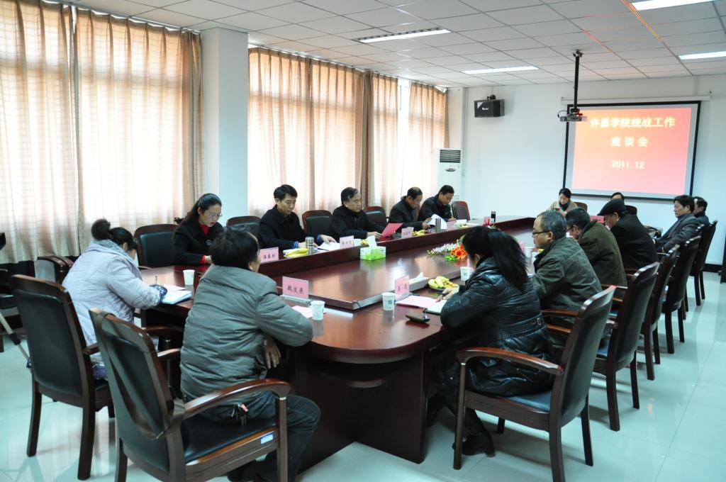 下午,我校在行政办公楼第四会议室召开许昌学院2011年民主党派、无党派人士代表座谈会。党委书记仉建涛,副书记汪庆华、王洪彬出席座谈会,党委组织部部长孙海和我校民主党派、无党派人士代表20余人参加座谈会,会议由党委统战部部长潘春彩主持。